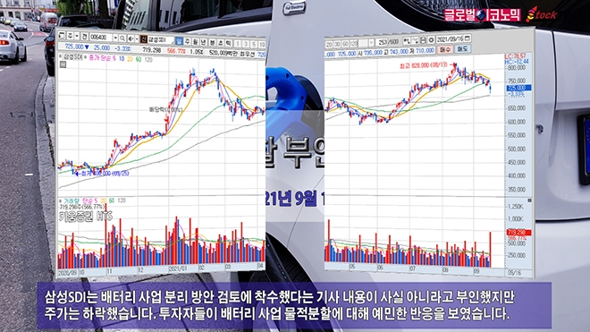 삼성SDI는 배터리 사업을 하는 에너지솔루션사업과 전자재료사업 부문 등으로 나눠져 있습니다. 투자자들은 삼성SDI가 LG화학과 SK이노베이션의 전철을 밟을까 우려하고 있습니다.