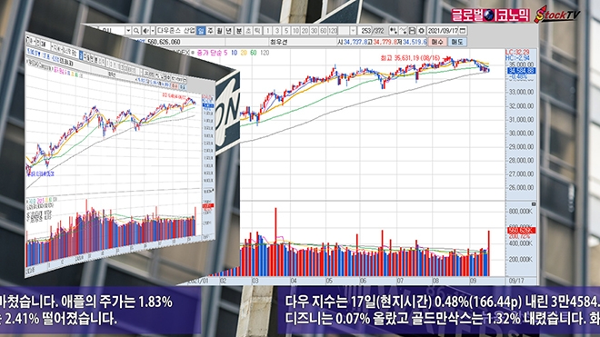다우 지수는 17일(현지시간) 0.48%(166.44p) 내린 3만4584.88로 장을 마감했습니다. 월트 디즈니는 0.07% 올랐고 골드만삭스는 1.32% 내렸습니다. 화이자는 1.30% 하락했습니다.