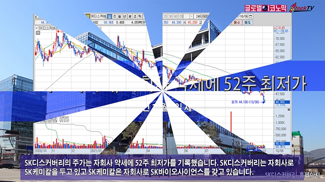 지난 한달간 투자주체별로는 개인은 4만6000주, 외국인은 4만2000주를 각각 사들였습니다. 기관은 8만4000주를 팔았습니다. SK디스커버리는 소액주주 비중이 43% 수준에 이릅니다.