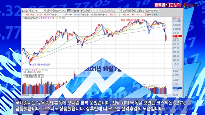 코스닥 지수는 7일 3.37%(31.07p) 상승한 953.43으로 거래를 마쳤습니다. 전날 급락했던 지수를 거의 회복했습니다. 종이목재업을 제외한 전 업종이 상승했습니다.
