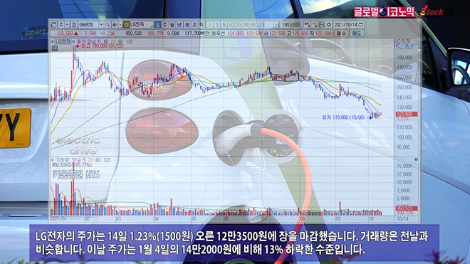 LG전자의 주가는 14일 1.23%(1500원) 오른 12만3500원에 장을 마감했습니다. 거래량은 전날과 비슷합니다. 이날 주가는 1월 4일의 14만2000원에 비해 13% 하락한 수준입니다.