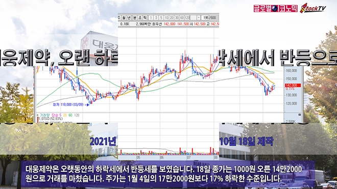 대웅제약은 오랫동안의 하락세에서 반등세를 보였습니다. 18일 종가는 1000원 오른 14만2000원으로 거래를 마쳤습니다. 주가는 1월 4일의 17만2000원보다 17% 하락한 수준입니다.