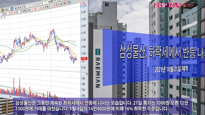 삼성물산은 그동안 계속된 하락세에서 반등에 나서는 모습입니다. 21일 종가는 1000원 오른 12만1500원에 거래를 마쳤습니다. 1월 4일의 14만4000원에 비해 16% 하락한 수준입니다.