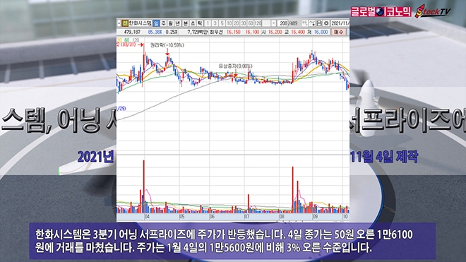 한화시스템은 3분기 어닝 서프라이즈에 주가가 반등했습니다. 4일 종가는 50원 오른 1만6100원에 거래를 마쳤습니다. 주가는 1월 4일의 1만5600원에 비해 3% 오른 수준입니다.