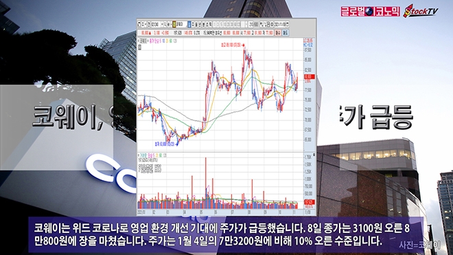 코웨이는 위드 코로나로 영업 환경 개선 기대에 주가가 급등했습니다. 8일 종가는 3100원 오른 8만800원에 장을 마쳤습니다. 주가는 1월 4일의 7만3200원에 비해 10% 오른 수준입니다.