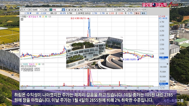 하림은 수익성이 나아졌지만 주가는 제자리 걸음을 하고 있습니다. 10일 종가는 105원 내린 2785원에 장을 마쳤습니다. 이날 주가는 1월 4일의 2855원에 비해 2% 하락한 수준입니다.