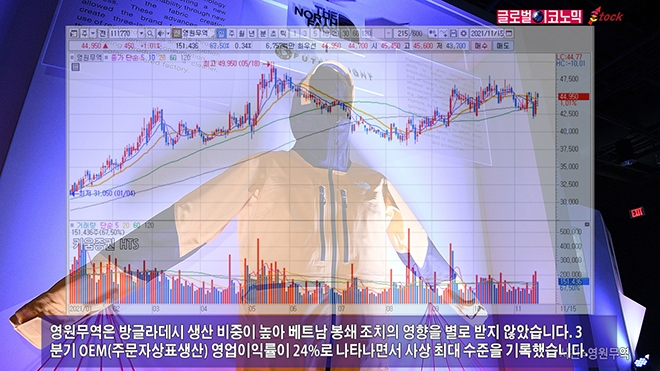 영원무역은 컨센서스 부합에 주가가 오름세를 보였습니다. 15일 종가는 450원 오른 4만4950원에 거래를 마쳤습니다. 주가는 1월 4일의 3만1100원에 비해 45% 상승한 수준입니다.