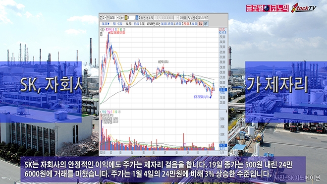 SK는 자회사의 안정적인 이익에도 주가는 제자리 걸음을 합니다. 19일 종가는 500원 내린 24만6000원에 거래를 마쳤습니다. 주가는 1월 4일의 24만원에 비해 3% 상승한 수준입니다.