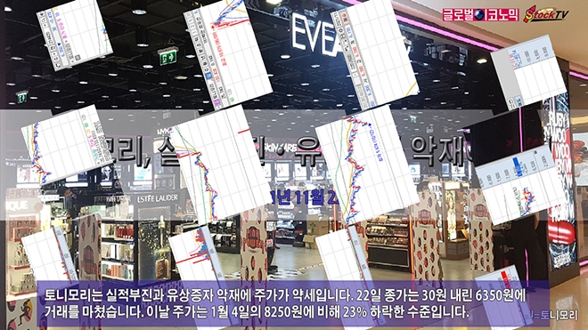 토니모리는 적자 폭이 줄어들고 있지만 여전히 실적부진에서 벗어나지 못하고 있습니다. 최근엔 유상증자를 실시하면서 주식 물량이 늘어나게 된다는 점도 주가에 부담이 됩니다.