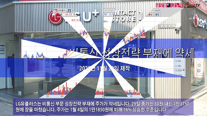 LG유플러스는 비통신 부문 성장전략 부재에 주가가 약세입니다. 29일 종가는 50원 내린 1만3750원에 장을 마쳤습니다. 주가는 1월 4일의 1만1850원에 비해 16% 상승한 수준입니다.