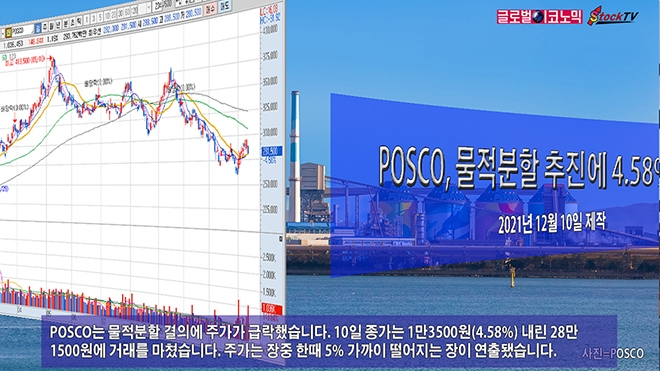 POSCO는 물적분할 결의에 주가가 급락했습니다. 10일 종가는 1만3500원(4.58%) 내린 28만1500원에 거래를 마쳤습니다. 주가는 장중 한때 5% 가까이 떨어지는 장이 연출됐습니다.