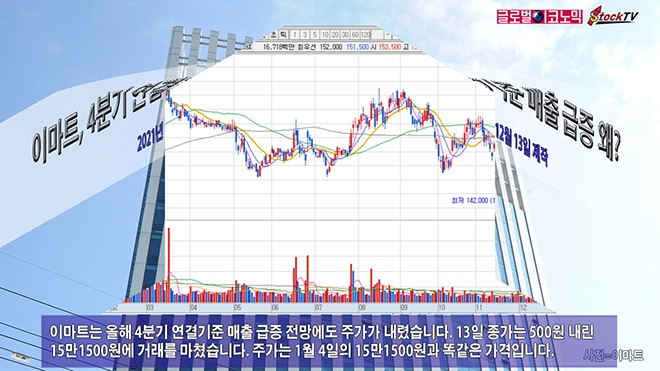 이마트는 올해 4분기 연결기준 매출 급증 전망에도 주가가 내렸습니다. 13일 종가는 500원 내린 15만1500원에 거래를 마쳤습니다. 주가는 1월 4일의 15만1500원과 똑같은 가격입니다.