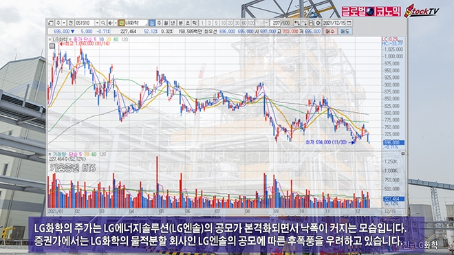 LG화학의 주가는 LG에너지솔루션(LG엔솔)의 공모가 본격화되면서 낙폭이 커지는 모습입니다. 증권가에서는 LG화학의 물적분할 회사인 LG엔솔의 공모에 따른 후폭풍을 우려하고 있습니다.