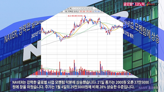 NAVER는 강력한 글로벌 사업 모멘텀 덕분에 상승했습니다. 21일 종가는 2000원 오른 37만5000원에 장을 마쳤습니다. 주가는 1월 4일의 29만3000원에 비해 28% 상승한 수준입니다.