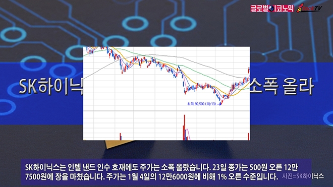 SK하이닉스는 인텔 낸드 인수 호재에도 주가는 소폭 올랐습니다. 23일 종가는 500원 오른 12만7500원에 장을 마쳤습니다. 주가는 1월 4일의 12만6000원에 비해 1% 오른 수준입니다.