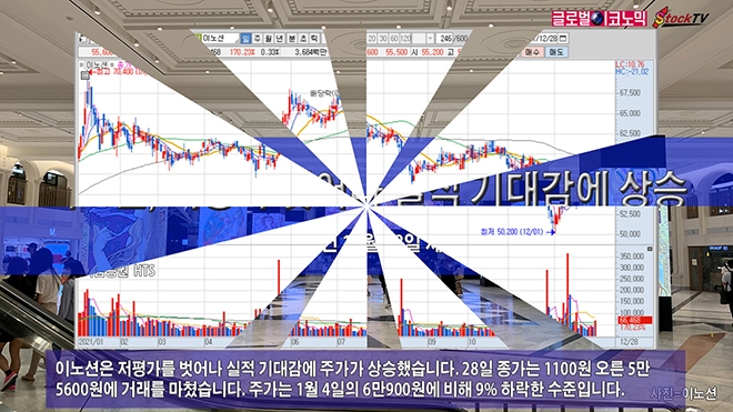 이노션은 저평가를 벗어나 실적 기대감에 주가가 상승했습니다. 28일 종가는 1100원 오른 5만5600원에 거래를 마쳤습니다. 주가는 1월 4일의 6만900원에 비해 9% 하락한 수준입니다.