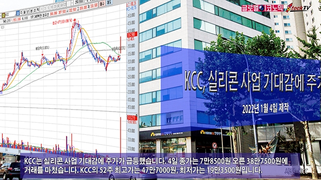 KCC는 실리콘 사업 기대감에 주가가 급등했습니다. 4일 종가는 7만8500원 오른 38만7500원에 거래를 마쳤습니다. KCC의 52주 최고가는 47만7000원, 최저가는 19만3500원입니다.