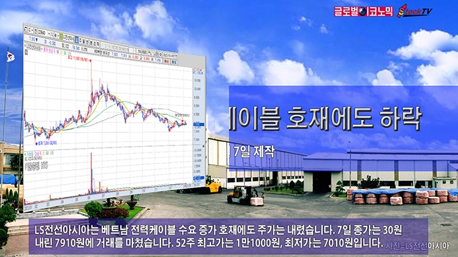 LS전선아시아는 베트남 전력케이블 수요 증가 호재에도 주가는 내렸습니다. 7일 종가는 30원 내린 7910원에 거래를 마쳤습니다. 52주 최고가는 1만1000원, 최저가는 7010원입니다.