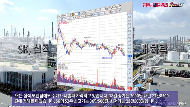 SK는 실적 모멘텀에도 주가가 나흘째 하락하고 있습니다. 18일 종가는 3000원 내린 23만8500원에 거래를 마쳤습니다. SK의 52주 최고가는 36만500원, 최저가는 23만500원입니다.