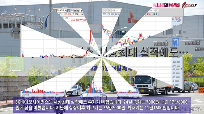 SK바이오사이언스는 사상최대 실적에도 주가가 빠졌습니다. 24일 종가는 7000원 내린 17만8000원에 장을 마쳤습니다. 지난해 상장이후 최고가는 36만2000원, 최저가는 11만1500원입니다.