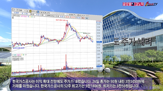 한국가스공사는 이익 확대 전망에도 주가가 내렸습니다. 26일 종가는 50원 내린 3만5050원에 거래를 마쳤습니다. 한국가스공사의 52주 최고가는 5만1800원, 최저가는 3만50원입니다.