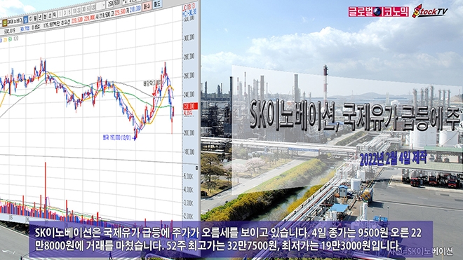 SK이노베이션은 국제유가 급등에 주가가 오름세를 보이고 있습니다. 4일 종가는 9500원 오른 22만8000원에 거래를 마쳤습니다. 52주 최고가는 32만7500원, 최저가는 19만3000원입니다.