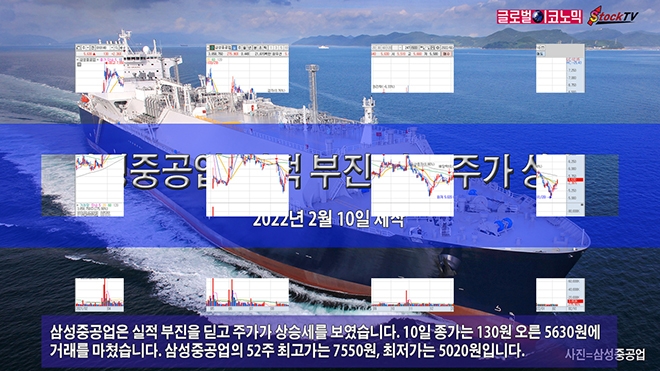 삼성중공업은 실적 부진을 딛고 주가가 상승세를 보였습니다. 10일 종가는 130원 오른 5630원에 거래를 마쳤습니다. 삼성중공업의 52주 최고가는 7550원, 최저가는 5020원입니다.