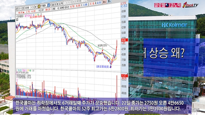 한국콜마는 하락장에서도 6거래일째 주가가 상승했습니다. 22일 종가는 2750원 오른 4만6650원에 거래를 마쳤습니다. 한국콜마의 52주 최고가는 6만2800원, 최저가는 3만3900원입니다.