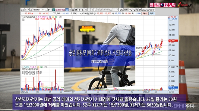 삼천리자전거는 대선 공약 테마와 전기자전거 기대감에 닷새째 올랐습니다. 22일 종가는 50원 오른 1만2900원에 거래를 마쳤습니다. 52주 최고가는 1만7300원, 최저가는 8630원입니다.