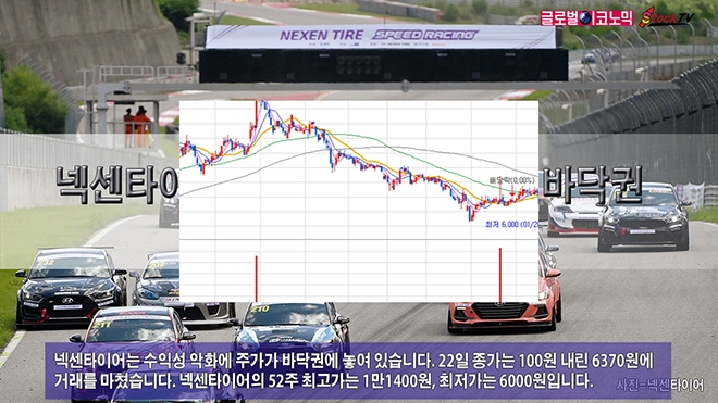 넥센타이어는 수익성 악화에 주가가 바닥권에 놓여 있습니다. 22일 종가는 100원 내린 6370원에 거래를 마쳤습니다. 넥센타이어의 52주 최고가는 1만1400원, 최저가는 6000원입니다.