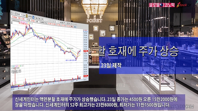 신세계인터는 액면분할 호재에 주가가 상승했습니다. 23일 종가는 4500원 오른 15만2000원에 장을 마쳤습니다. 신세계인터의 52주 최고가는 23만8000원, 최저가는 11만1500원입니다.