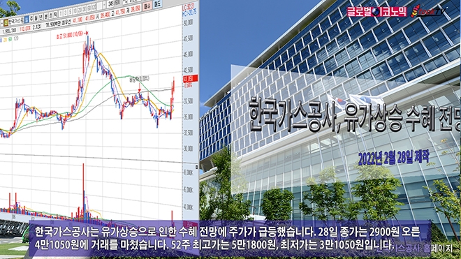 한국가스공사는 유가상승으로 인한 수혜 전망에 주가가 급등했습니다. 28일 종가는 2900원 오른 4만1050원에 거래를 마쳤습니다. 52주 최고가는 5만1800원, 최저가는 3만1050원입니다.