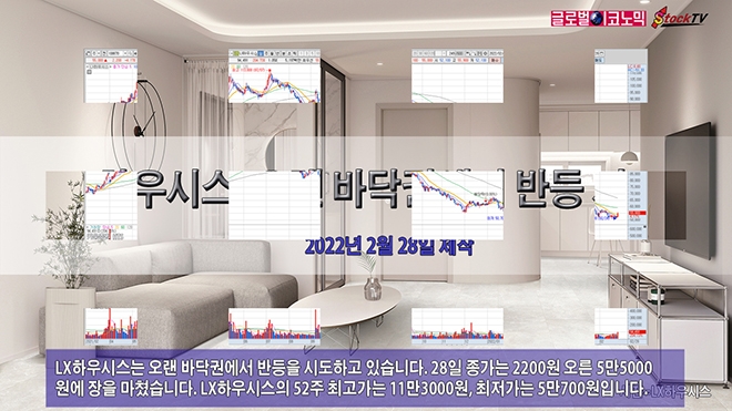 LX하우시스는 오랜 바닥권에서 반등을 시도하고 있습니다. 28일 종가는 2200원 오른 5만5000원에 장을 마쳤습니다. LX하우시스의 52주 최고가는 11만3000원, 최저가는 5만700원입니다.