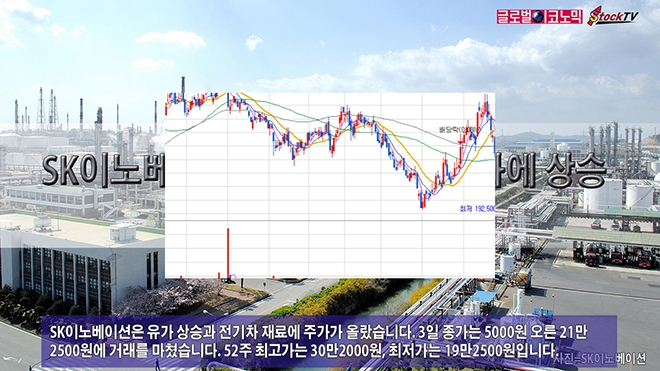 SK이노베이션은 유가 상승과 전기차 재료에 주가가 올랐습니다. 3일 종가는 5000원 오른 21만2500원에 거래를 마쳤습니다. 52주 최고가는 30만2000원, 최저가는 19만2500원입니다.