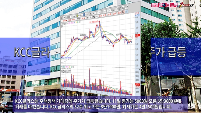 KCC글라스는 주택정책 기대감에 주가가 급등했습니다. 11일 종가는 5000원 오른 6만3000원에 거래를 마쳤습니다. KCC글라스의 52주 최고가는 8만1900원, 최저가는 4만1500원입니다.