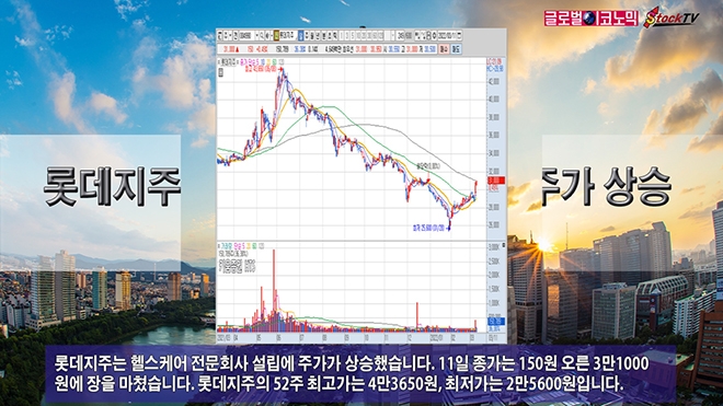 롯데지주는 헬스케어 전문회사 설립에 주가가 상승했습니다. 11일 종가는 150원 오른 3만1000원에 장을 마쳤습니다. 롯데지주의 52주 최고가는 4만3650원, 최저가는 2만5600원입니다.