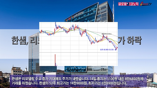 한샘은 리모델링 수요 증가 기대에도 주가가 내렸습니다. 14일 종가는 3100원 내린 8만6800원에 거래를 마쳤습니다. 한샘의 52주 최고가는 14만9000원, 최저가는 6만8900원입니다.