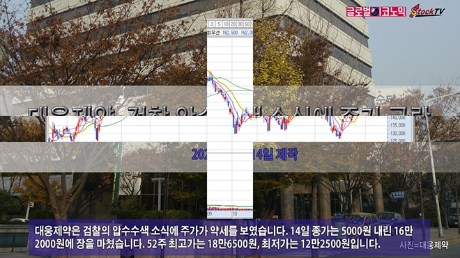 대웅제약은 검찰의 압수수색 소식에 주가가 약세를 보였습니다. 14일 종가는 5000원 내린 16만2000원에 장을 마쳤습니다. 52주 최고가는 18만6500원, 최저가는 12만2500원입니다.