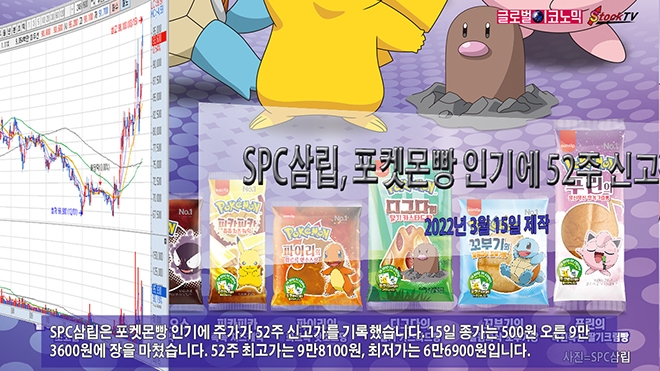 SPC삼립은 포켓몬빵 인기에 주가가 52주 신고가를 기록했습니다. 15일 종가는 500원 오른 9만3600원에 장을 마쳤습니다. 52주 최고가는 9만8100원, 최저가는 6만6900원입니다.