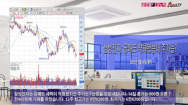 삼성전자는 공매도 세력이 약화됐지만 주가는 7만원을 오르내립니다. 16일 종가는 900원 오른 7만400원에 거래를 마쳤습니다. 52주 최고가는 8만6200원, 최저가는 6만8300원입니다.