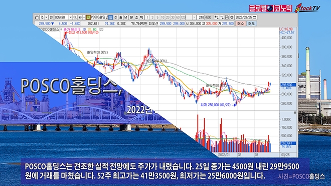 POSCO홀딩스는 견조한 실적 전망에도 주가가 내렸습니다. 25일 종가는 4500원 내린 29만9500원에 거래를 마쳤습니다. 52주 최고가는 41만3500원, 최저가는 25만6000원입니다.
