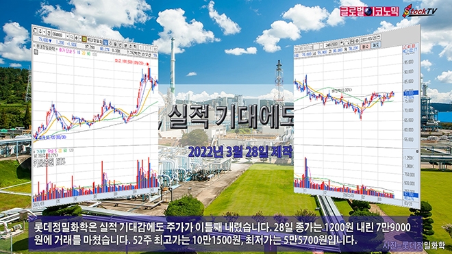 롯데정밀화학은 실적 기대감에도 주가가 이틀째 내렸습니다. 28일 종가는 1200원 내린 7만9000원에 거래를 마쳤습니다. 52주 최고가는 10만1500원, 최저가는 5만5700원입니다.