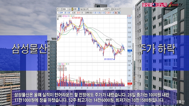 삼성물산은 올해 실적이 턴어라운드 할 전망에도 주가가 내렸습니다. 28일 종가는 1000원 내린 11만1000원에 장을 마쳤습니다. 52주 최고가는 14만6000원, 최저가는 10만1500원입니다.
