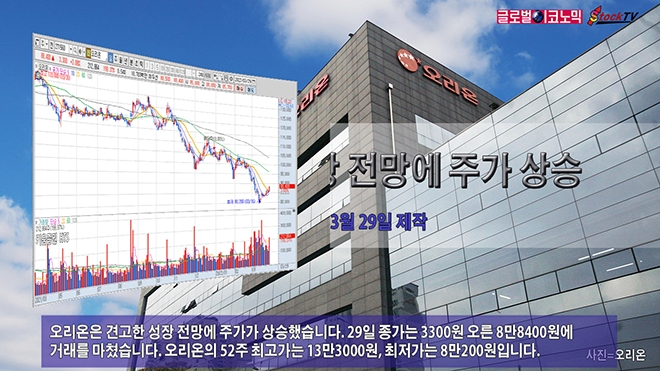 오리온은 견고한 성장 전망에 주가가 상승했습니다. 29일 종가는 3300원 오른 8만8400원에 거래를 마쳤습니다. 오리온의 52주 최고가는 13만3000원, 최저가는 8만200원입니다.