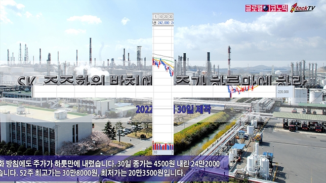 SK는 주주환원 강화 방침에도 주가가 하룻만에 내렸습니다. 30일 종가는 4500원 내린 24만2000원에 거래를 마쳤습니다. 52주 최고가는 30만8000원, 최저가는 20만3500원입니다.