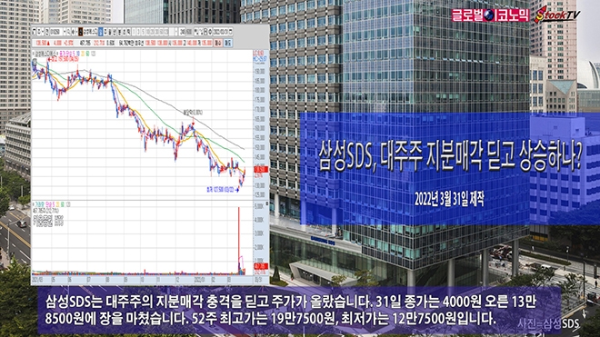 삼성SDS는 대주주의 지분매각 충격을 딛고 주가가 올랐습니다. 31일 종가는 4000원 오른 13만8500원에 장을 마쳤습니다. 52주 최고가는 19만7500원, 최저가는 12만7500원입니다.