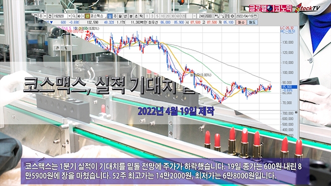 코스맥스는 1분기 실적이 기대치를 밑돌 전망에 주가가 하락했습니다. 19일 종가는 600원 내린 8만5900원에 장을 마쳤습니다. 52주 최고가는 14만2000원, 최저가는 6만8000원입니다.