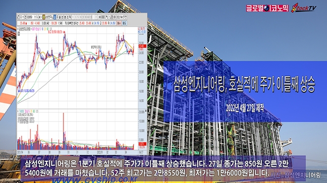 삼성엔지니어링은 1분기 호실적에 주가가 이틀째 상승했습니다. 27일 종가는 850원 오른 2만5400원에 거래를 마쳤습니다. 52주 최고가는 2만8550원, 최저가는 1만6000원입니다.