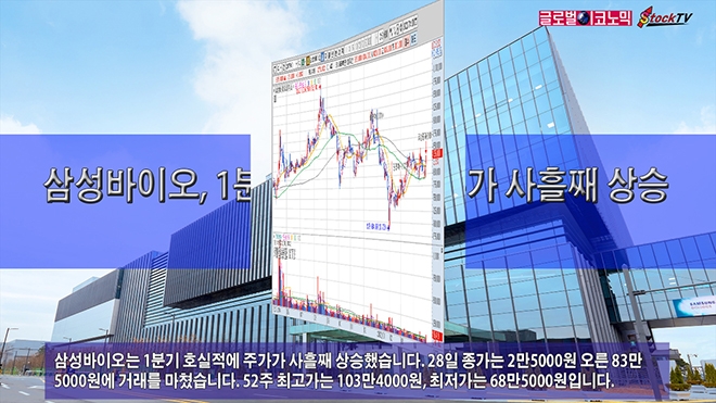 삼성바이오는 1분기 호실적에 주가가 사흘째 상승했습니다. 28일 종가는 2만5000원 오른 83만5000원에 거래를 마쳤습니다. 52주 최고가는 103만4000원, 최저가는 68만5000원입니다.