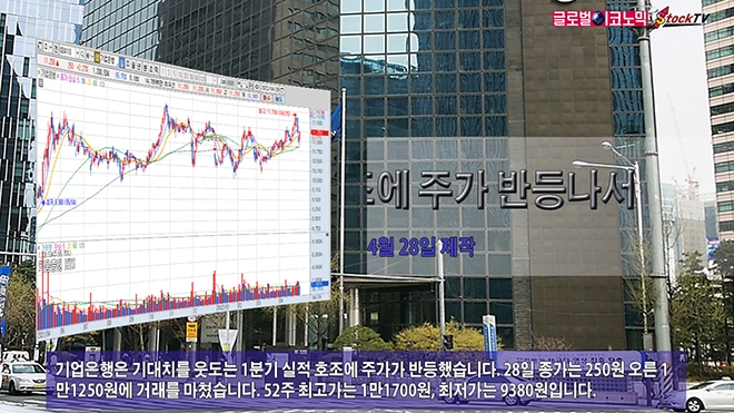기업은행은 기대치를 웃도는 1분기 실적 호조에 주가가 반등했습니다. 28일 종가는 250원 오른 1만1250원에 거래를 마쳤습니다. 52주 최고가는 1만1700원, 최저가는 9380원입니다.